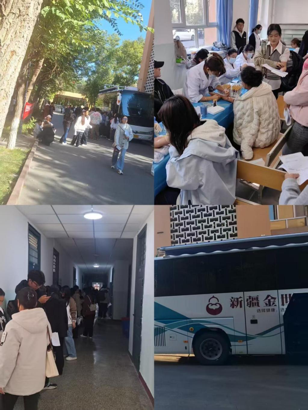 为进一步入贯彻落实自治区党委、人民政府医疗惠民政策,稳步提升我区全民健康体检工作水平,根据新疆维吾尔自治区卫生健康委员会、教育厅、民政厅、财政厅文件《关于印发2025年全民健康体检工作方案的通知》(新卫基层卫生发〔2025〕3号)文件精神,高新区(新市区)卫健委要求辖区内2025年在校学生全民健康体检工作在10月中旬完成,新市区卫健委指定银川路社区卫生服务中心对我校建工和建材两校区进行入校体检,杭州路社区卫生服务站对城建校区进行体检工作;根据与体检单位协调后我院于2025年10月9日至16日对在校生近5400学生进行健康体检工作。